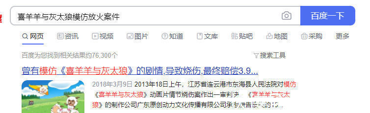 但我们也看到了另外的一些新闻,比如2013年的一条新闻,我到现在还记忆犹新:当时江苏省东海县有3个小孩子看了《喜羊羊和灰太狼》之后,模仿动画片剧情开始放火烧同学,导致2个小孩子严重烧伤,最终动画片的制作公司也被连带告上了法院,赔偿了原告15%的损失。